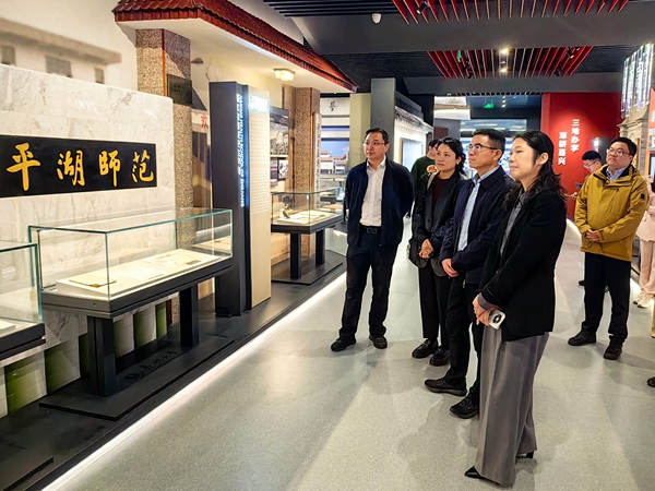 在嘉兴大学,校党委副书记陈立力接待了我校调研组一行,并介绍了嘉兴大学办学历史、办学特色、发展现状等方面的总体情况,围绕创新创业工作的体制机制建设、课程体系构建、赛事组织管理等方面做了重点介绍。丁敢真简要介绍了我校的发展情况,并希望与嘉兴大学进一步深化交流合作,学习先进经验,共同促进两校高质量发展。与会人员围绕学生工作品牌创建、创新创业大赛项目培育等方面进行了深入交流。会前,调研组一行参观了校史馆、大学生创业实践园。