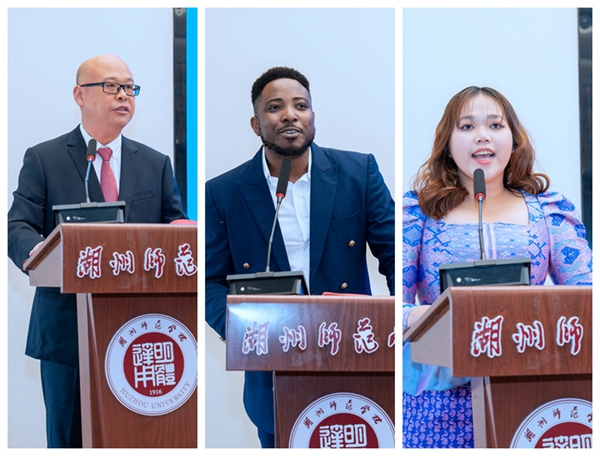 来自加纳的国际商务专业硕士生Louis Kwame Anani(路易斯)作为在校生代表发言。他对在过去一年里向他提供过帮助与支持的教职工表达了感谢,并表示湖州师范学院不仅是学术的中心,更是一片播种梦想的沃土。来自柬埔寨的Kong Mengsean(龚明仙)代表2024级新生发言。她分享了自己为申请湖州师范学院所做的努力,并表示在未来的学习和生活中将以乐观的心态、积极的行动去迎接每一次挑战,成为更好的自己。