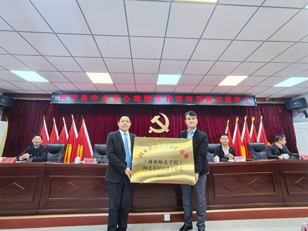11月2日,舒志定一行到阿克苏柯坪县,参加柯坪县中小学心理健康教育培训开班仪式和座谈会。开班仪式上,双方共同为国家语言文字推广基地(湖州师范学院)阿克苏柯坪县工作站揭牌。国家语言文字推广基地(湖州师范学院)将以柯坪县工作站为依托,发挥高校优势,整合资源,积极参与实施国家通用语言文字普及提升工程和推普助力乡村振兴计划,调研民族地区国家通用语言文字使用情况,并通过经典润乡土、暑期社会实践等活动,面向农村和民族地区教师、基层干部等重点领域人群开展国家通用语言文字能力提升培训,助力乡村人才培养和文化振兴工作。