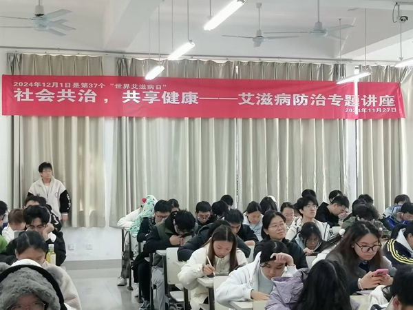 在第37个世界艾滋病日来临之际,为普及艾滋病防治知识,增强大学生预防艾滋病及自我保护意识,11月27日下午,校爱卫会联合医学院(护理学院)门诊部、湖州市中心医院共同举办了以“社会共治,终结艾滋,共享健康”为主题的艾滋病防治宣传讲座,邀请市中心医院李晓峰主任主讲,我校200余名师生参加。