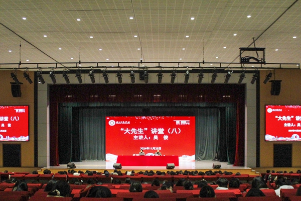 11月25日晚,教育学院“大先生”讲堂第八讲在大学生活动中心举行。本次活动邀请湖师附小教育集团教师(原集团副校长、西山漾校区校长)吴俊老师做客讲堂,教育学院2024级全体本科生、研究生与会。讲座由教育学院党委副书记沈卫主持。