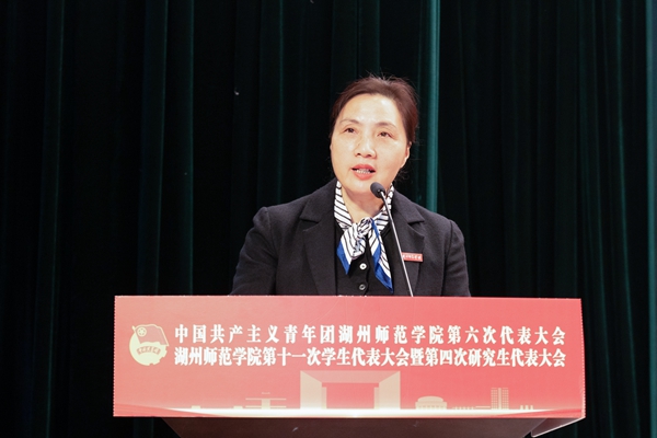 校团委副书记(主持工作)成晓代表第五届委员会向大会作题为《矢志不渝跟党走,挺膺担当建新功 团结带领全校团员青年在建设高水平湖州师范大学征程中贡献青春力量》的工作报告。