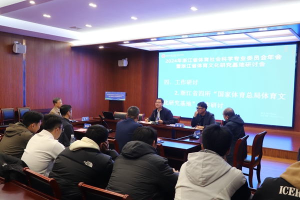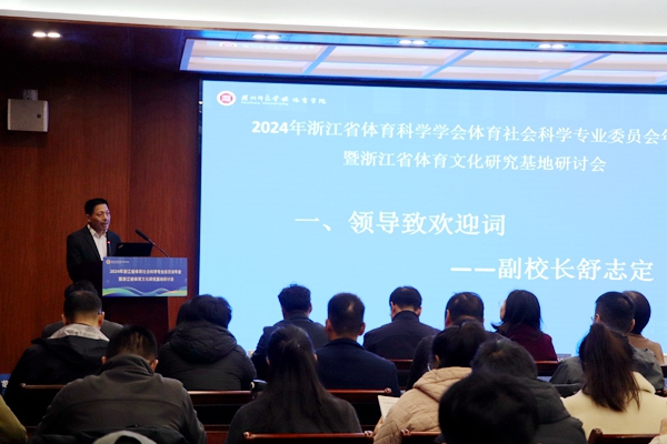 12月7日,浙江省体育科学学会体育社会科学专业委员会年会暨浙江省体育文化研究基地研讨会在我校召开。我校副校长舒志定、浙江省体育科学学会副理事长周丽君出席,来自《武汉体育学院学报》、浙江师范大学、温州大学、杭州师范大学等高校和研究机构的专家学者,我校人文社科处相关负责人,体育学院领导班子成员及全体硕士生导师和研究生参加了会议。