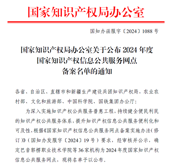 近日,国家知识产权局公布了2024年度国家知识产权信息公共服务网点名单,图书馆牵头申报的湖州师范学院知识产权信息公共服务网点成功入选,是浙江省本年度唯一获批的国家级知识产权信息公共服务网点。