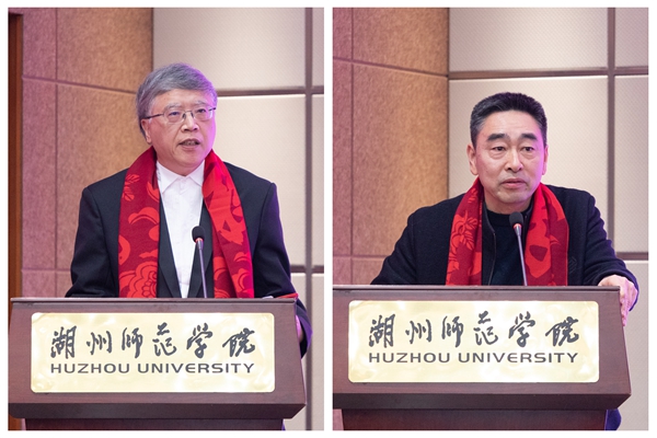 退休教职工代表,文学博士、文科二级教授、人文学院刘方老师表示:“来校二十四年,作为一名一直工作在基层的普通教师,正是在学校领导、部门学院和同事的支持下,我个人的能力才能够在学校发展的机遇中得到展现,个人的价值才能够在学校的发展中获得实现。感恩我能够与学校一起成长。”退休教职工代表、原退休教工管理处处长俞旭,从1983年进校求学到留校担任辅导员、成长为中层干部,四十余年里亲身经历了学校从只有38亩的袖珍校园,到今天成为硕士学位授权高校,他动情地说:“学校的迁建、合并、申本、申硕等,凝聚了几代人的心血和汗水,也离不开我们在座老师们的付出,正是全校上下勠力同心、薪火相传,才成就了今天的湖州师范学院。”