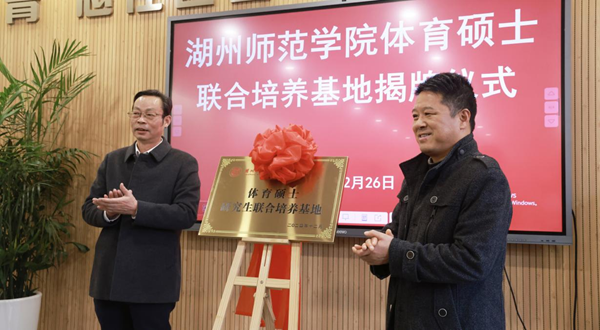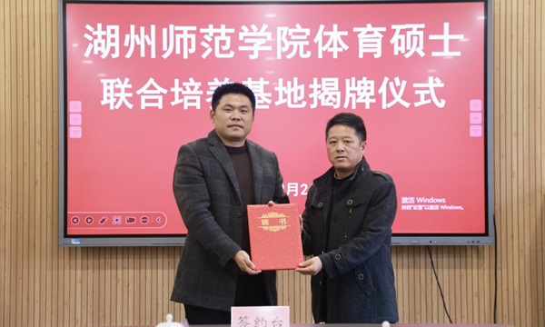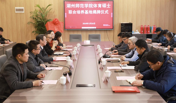 为深化体教融合,提升教师教育教学能力,突出实践特色,切实提高研究生培养质量,12月26日下午,我校体育专业硕士联合培养基地签约揭牌仪式在湖州市第五中学教育集团凤凰校区举办。湖州市体育教研员、湖州市第五中学教育集团全体领导班子成员,我校研究生院负责人、体育学院领导班子成员、研究生部负责老师及2023级全体体育专业硕士体育教学领域研究生参加。仪式由湖州市第五中学教育集团副校长徐刚强主持。