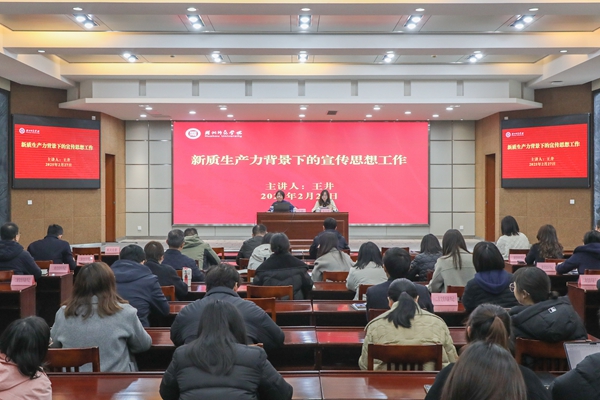 2月27日下午,学校在明达楼126会议室举办“新质生产力背景下的宣传思想工作”讲座,浙江省委党校舆情研究中心副教授、华中科技大学新闻传播学院网络传播博士王井老师主讲。学校相关职能部门负责人、二级学院党委(总支)书记、副书记、二级党组织联络员参加。