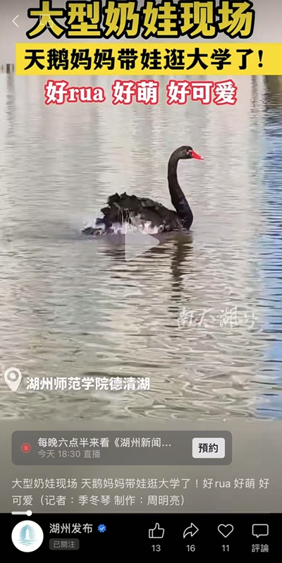 2025年3月21日,湖州发布报道我校德清湖中,一幕黑天鹅“奶娃”的温馨场景引起不少师生围观。具体如下: