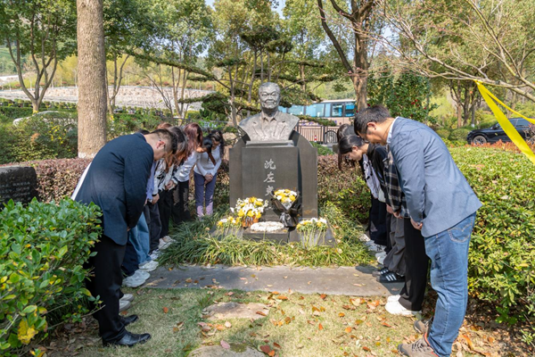 访问期间,沈龙一行还在相关职能部门和二级学院师生代表的陪同下,前往枫树岭生态陵园祭拜沈左尧先生,以此表达深切的缅怀之情。师生代表们也分享了自己受到的启发,表示将把沈老的爱国情怀与不懈追求融入到日常学习和工作中,以实际行动传承他的精神遗产。