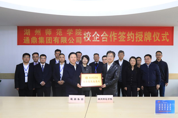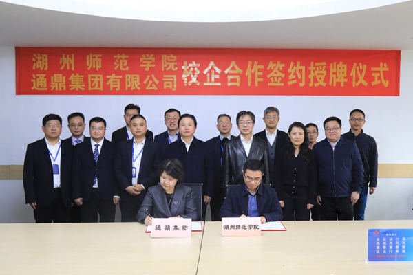 4月2日下午,我校与通鼎集团有限公司合作签约暨就业基地授牌仪式在通鼎集团办公大楼举行。中国慈善联合会副会长、通鼎集团有限公司董事长沈小平,通鼎集团有限公司总经理钱惠芳,我校副校长(主持行政日常工作)盛况,党委副书记丁敢真出席,通鼎集团旗下相关单位负责人,我校相关职能部门和二级学院负责人参加活动。