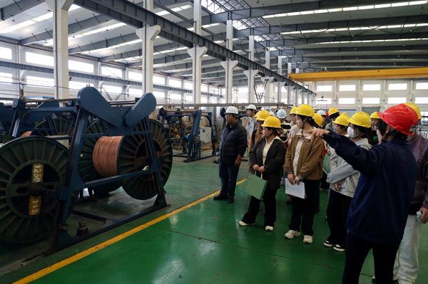 会前,与会人员一行参观了企业展厅和特种电缆事业部。据悉,当天学校还组织了50名余学生赴通鼎集团参观、面试。