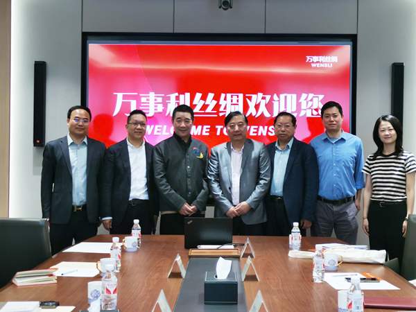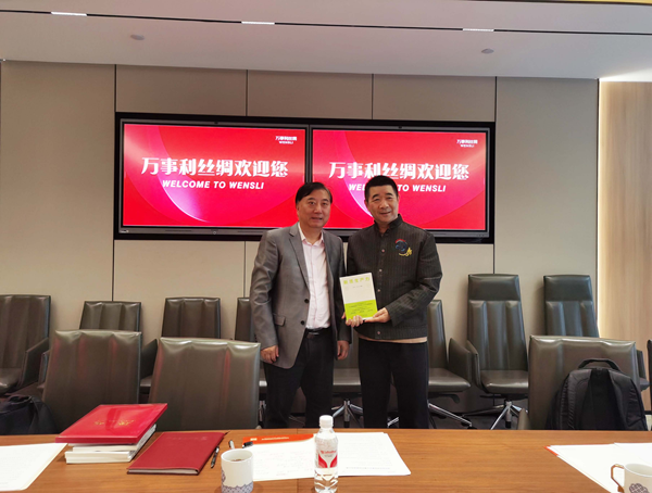4月9日,我校可持续发展研究院院长、蚕丝绸文化基地主任金佩华一行5人,赴杭州万事利丝绸文化股份有限公司考察交流。蚕丝绸文化基地相关负责人同行,万事利丝绸文化股份有限公司董事长李建华,副总经理马廷芳、滕俊楷,董事长助理沈小华等热情接待。