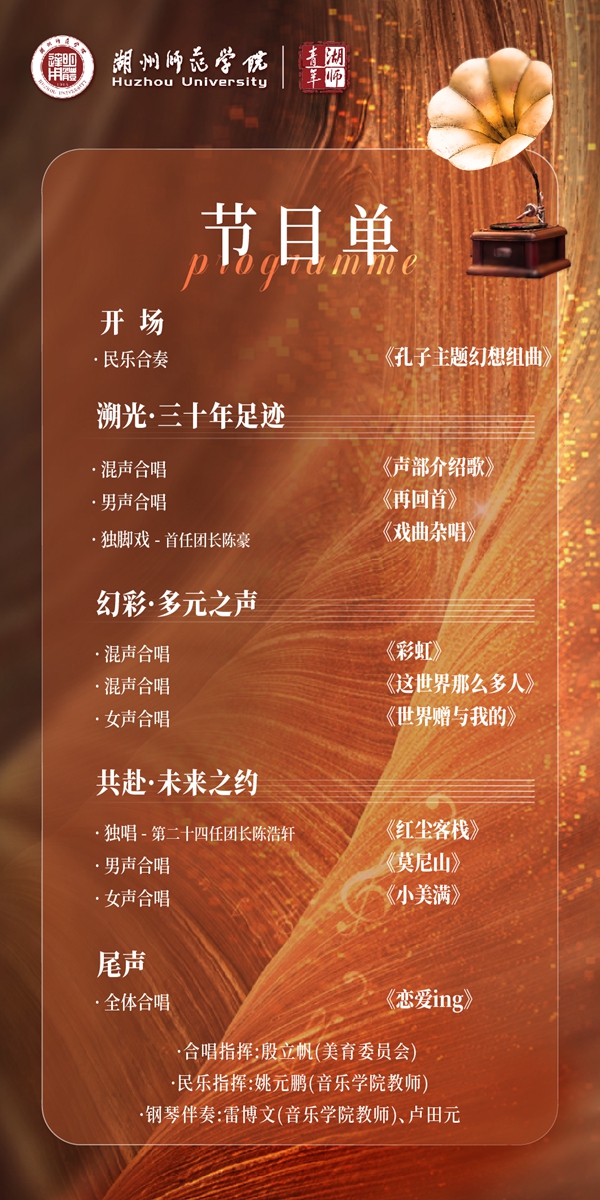 湖州师范学院红柳艺术团自成立以来,始终秉承“以文化人、以美润心”的宗旨,深耕合唱、舞蹈、器乐演奏等艺术领域,历经三十载春秋,不断产出高质量艺术成果,营造了高雅的校园艺术氛围,培养了一批批艺术气息浓厚的湖师青年。从校园舞台、社会展演再到大艺节赛事,红柳艺术团以专业水准与青春活力,成为学校一张亮丽的文化名片。值此30周年之际,举办汇报演出,展现团队精神风貌,凝聚成员情感,为学校美育工作发展注入新动能。