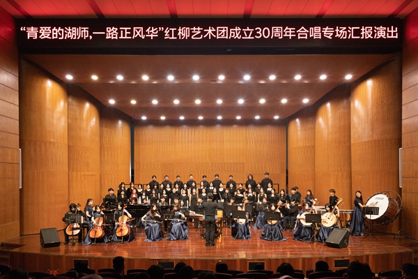 4月19日,“青爱的湖师,一路正风华”——湖州师范学院红柳艺术团成立30周年合唱专场汇报演出在中校区音乐厅举办。校党委副书记丁敢真,副校长李庆峰,校党委委员、党校办主任沈国丰出席,我校师生校友共500余人一同观赏了这场音乐会。