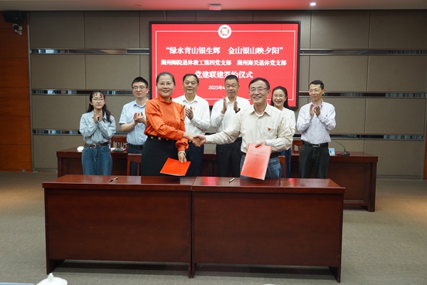 为切实发挥离退休党组织政治功能和组织功能,凝聚党建合力,探索创新退休党建工作方式,4月24日,一场别开生面的银龄党建联建签约仪式在我校举行。湖州海关退休党支部与我校退休教工第四党支部正式签署党建联建协议,以“绿水青山银生辉 金山银山映夕阳”为主题,开启校地离退休党建协同发展新篇章。校党委副书记陈永华,湖州海关党委书记、关长钱建伟,市老干部局副局长孙赟出席,湖州海关专职副书记、校退休工作处负责人及双方支部书记、党员代表等参加活动。