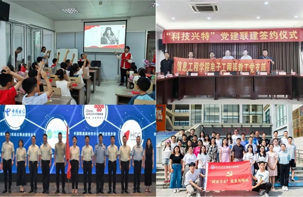 持续深化校企地党建联建,与市大数据局、公安局等11个党组织共建全市“数智”党建大联盟,与市特种设备检测研究院等7个党组织开展“科技兴特”党建联建,纵深推进理论联学、活动联办、项目联研、标准联制、品牌联建“五联”活动,积极赋能“数字湖州”建设,联合开展产学研合作项目26项,项目经费达570余万元,特色做法入选校校企地党建联建典型案例。成立“网安卫士”党员志愿服务先锋队,近三年,赴漾东村、黄杜村、朝阳社区等开展活动2400余场,提供智能设备维修6000余次,受益群众达12000余人,服务团队入选全国大学生延安精神志愿宣讲团和市青年社会组织工作重点实施项目,被学习强国等媒体报道。