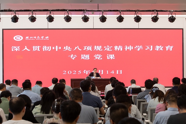 许慧霞讲授题为《深入贯彻中央八项规定精神 奋力争当“六干”先锋 以优良作风护航高水平师范大学建设》的专题党课。她指出,当前全校上下正在扎实开展深入贯彻中央八项规定精神学习教育,要站在讲政治和顾大局的高度,持续深化对学习教育重大意义的认识,进一步增强开展好学习教育的政治自觉、思想自觉和行动自觉,把学习教育成果转化为聚力“创大拼‘博’”攻坚的实际行动。