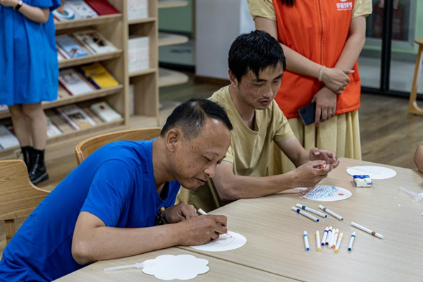 宣讲结束后,宣讲团还开展了“绘画彩色扇子”活动。志愿者带着社区居民共同绘制扇子,表达对美好生活的向往,绘制完成的扇子作为礼物赠予小区居民,传递爱心与善意。