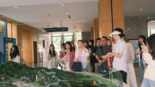 在余村“两山”景区,师生党员们开启沉浸式研学,认真观摩了余村大景区规划沙盘,参观了余村“绿水青山就是金山银山”纪念碑、“两山”会址、余村村史馆等,并观看了专题纪录片。