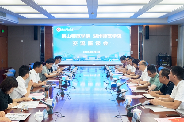 郑耿忠对我校的热情接待表示感谢,并介绍了韩山师范学院的基本情况。他表示,湖州师范学院近年来办学特色鲜明、发展成效显著,期待双方不断深化合作,共同探索师范类高校高质量发展新路径。