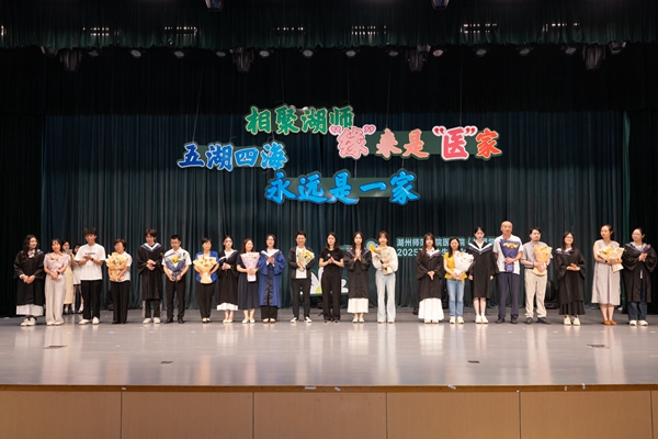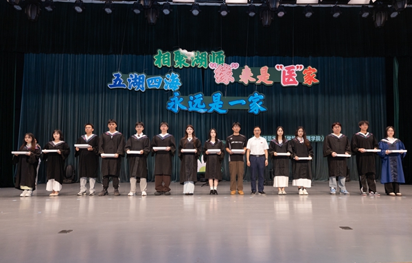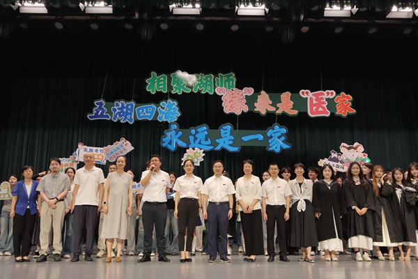 6月4日,医学院(护理学院)举办2025届毕业生欢送会。本次活动以“相聚湖师,‘缘’来是‘医’家人;五湖四海,永远是一家人”为主题。医学院全体领导班子、2025届毕业班班主任、全体辅导员、研究生导师和在校生代表,以及2025届全体毕业生齐聚一堂,共同回顾青春岁月,见证成长足迹,为即将踏上新征程的学子送上最真挚的祝福。