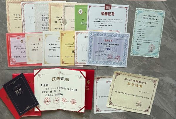 除了科研训练,王彦林还参加了“正大杯”第十二届全国大学生市场调查与分析大赛、浙江省大学生物理创新(理论)竞赛等多个A类竞赛并取得了优异成绩。多路径的尝试也必然意味着会遇到更多的困难,但王彦林直言,正是这些困难和挑战让自己发生了蜕变。“记得曾经听过一位教授说过类似的话,‘当你觉得面对困难很艰难的时候,那正是你提升的时候。’这句话给了我很大的启发。它提醒我,困难与挑战并不可怕,反而是一个机会,一次成长的契机。”