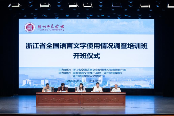 6月23日至24日,由浙江省教育厅主办、国家语言文字推广基地(湖州师范学院)、我校人文学院承办的浙江省全国语言文字使用情况调查培训班在我校举办。浙江省教育厅教材处(语管处)处长徐漾,我校副校长、国家语言文字推广基地主任舒志定出席,省教育厅教材处(语管处)和我校教务处、人文学院相关负责人参加。来自全省11个设区市的227名省、市、县三级调查管理员、调查组长及调查员参加培训。