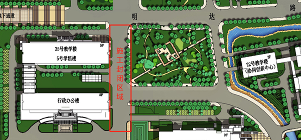 因东校区明达楼和经管学院东侧道路沥青面层改造需要,6月28日--6月29日该区域将进行封闭施工,详见附图。
