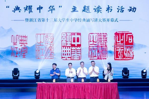 王建华宣布浙江省第十三届大学生中华经典诵写讲大赛启动。