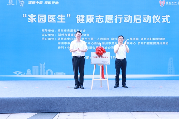 健康有约,志愿同行。7月14日下午,湖州市“家园医生”健康志愿行动启动仪式在爱山广场墨香坊举行。我校医学院(护理学院)党委书记甘顺良、党委副书记董建新带领师生代表受邀参加。