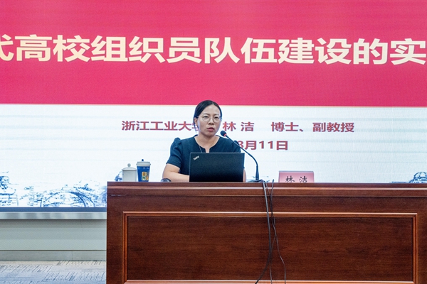 启动会后,举行了第一期“明达先锋”党建论坛,浙江工业大学党委组织部副部长林洁应邀作《新时代高校组织员队伍建设的实践与思考》专题报告。她深入阐明加强高校组织员队伍建设的重大意义,分析了当前面临的机遇与挑战,提出了构建“选育管用”全链条建设体系的对策路径,激励全体组织员努力成为“政治忠诚、专业过硬、担当尽责”的精兵,以队伍质量跃升共同铸就高校党建的“浙江样板”。