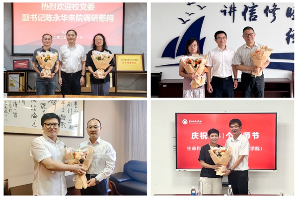 每到一处,校领导为教师代表送上鲜花,感谢他们为学校事业发展做出的贡献。交流中,校领导关切地询问了教师们在教学、科研、生活等方面的情况,并征求对学校发展的意见建议。校领导表示,学校的发展离不开全体师院人的辛勤奉献,希望全体教职工继续传承和弘扬师院精神,凝心聚力,锐意进取,为学校高质量发展贡献更大力量。教师代表们感谢学校的关心,表示将坚守教育初心,潜心立德树人,为学校和社会培养更多优秀人才。