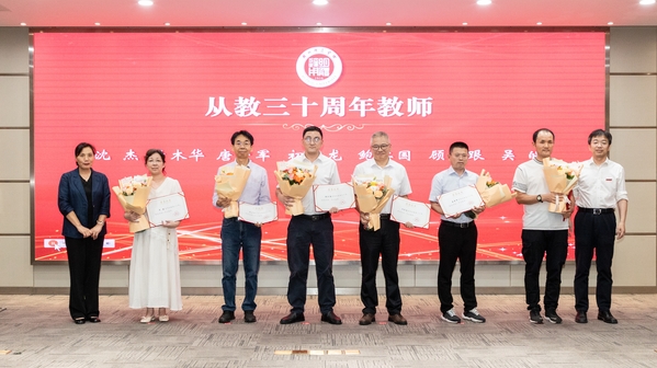 校党委书记许慧霞向为学校发展倾注心血的从教30周年教师致以崇高敬意,向加入湖师大家庭的新教师们表示热烈欢迎,向辛勤耕耘在教育教学、科研服务一线的全体教职工致以节日的诚挚问候。许慧霞传达了全市教育强市建设大会精神,她强调,要聚焦师道有承、群众有感、均衡有质、赋能有力,加快推进教育科技人才一体贯通,为创新湖州建设注入强劲动能;要以教育家精神为引领,推动广大教师持续涵养忠诚的职业品格、深厚的教育情怀、敏锐的洞察能力、过硬的教学水平、优良的师德师风;要加强内涵式发展,切实提升学校办学水平和质量,更好赋能湖州经济社会高质量发展。