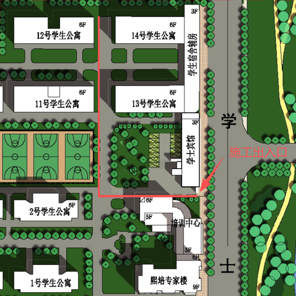 因西校区13幢、14幢学生公寓修缮项目施工,即日起至2026年1月25日,西校区13幢、14幢学生公寓西侧路段及继续教育学院北侧路段实行占道施工。学士宾馆和继续教育学院之间预留施工临时出入口,届时请留意现场交通指引,注意出行安全。请各部门、二级学院,广大师生相互转告。因项目施工给您带来不便,敬请谅解!