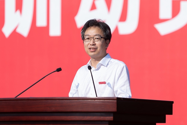 典礼上,盛况作了题为《在湖师,活出青春的模样》的讲话。他表示,湖州师范学院有优秀的教师方阵、完善的育人设施、并肩前行的伙伴,同学们会在课堂的讨论中读懂“明体达用”的校训,在实验室、图书馆的彻夜灯火里践行“艰苦奋斗,自强不息,包容求新,博雅笃行”的湖师精神。他希望2025级的同学们扛起强国兴邦的时代重任,把个人理想融入国家发展的洪流之中,努力培育胸怀天下、矢志报国的情怀和砥砺修身、正直坦荡的品格,让人生的价值在强国征程中升华,用不懈奋斗为民族复兴的丰碑添砖加瓦;涵养包容求新的人生境界,努力具备放眼世界、面向未来的视野和主动探索、勇于创新的素质,让青春的胸怀在成就事业、服务人民的征程中愈发辽阔、愈发宽广。他希望同学们积极拥抱智能时代的星辰大海,掌握学以致用、科学应变的能力和精深广博、交叉复合的知识,让青春的臂膀在探索中长出力量,成为劈开迷雾的“创新之刃”。盛况表示,青春当致远,拼搏启新航。希望同学们始终与祖国同频,与时代共振,向未来前进,在强国建设的征程中书写青春篇章,在民族复兴的伟业中贡献青春力量。