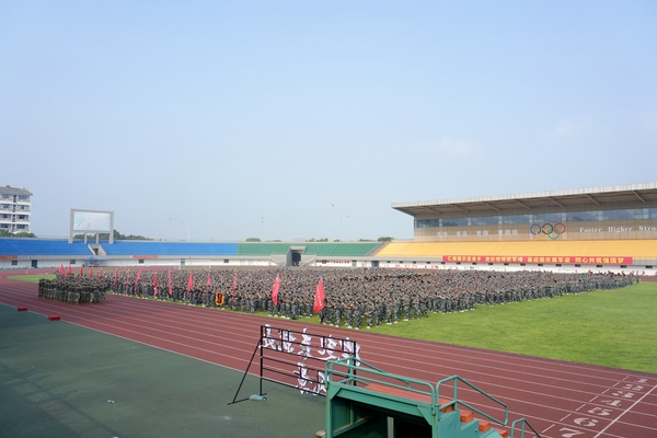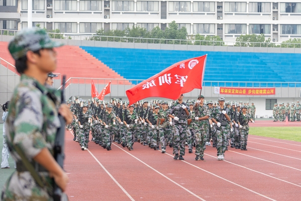 9月28日下午,我校2025级新生军训汇报表演暨总结表彰大会在东校区体育场举行。校党委书记许慧霞,校党委副书记、军训旅政委丁敢真,承训部队领导、军训旅旅长高杰中校出席大会。各学院党委(总支)书记、副书记,军训领导小组成员,军训教官、全体教导员,2025级全体参训新生参会。大会由丁敢真主持。