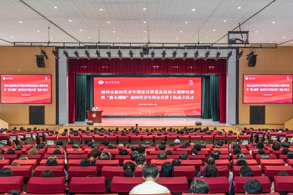 10月11日下午,湖州市新时代青年理论宣讲进高校展示观摩培训暨“薪火湖师”新时代青年理论宣讲工坊成立仪式在中校区大学生活动中心举行。本活动由校党委宣传部主办,人文学院承办。湖州市委宣传部,校党委宣传部、学工部、团委及有关学院相关负责人,浙江省优秀青年理论宣讲员代表,来自湖州市直单位和各县区的青年宣讲员代表,湖州学院、湖州职院青年大学生宣讲员代表,我校青年师生宣讲员代表共计650余人参加。