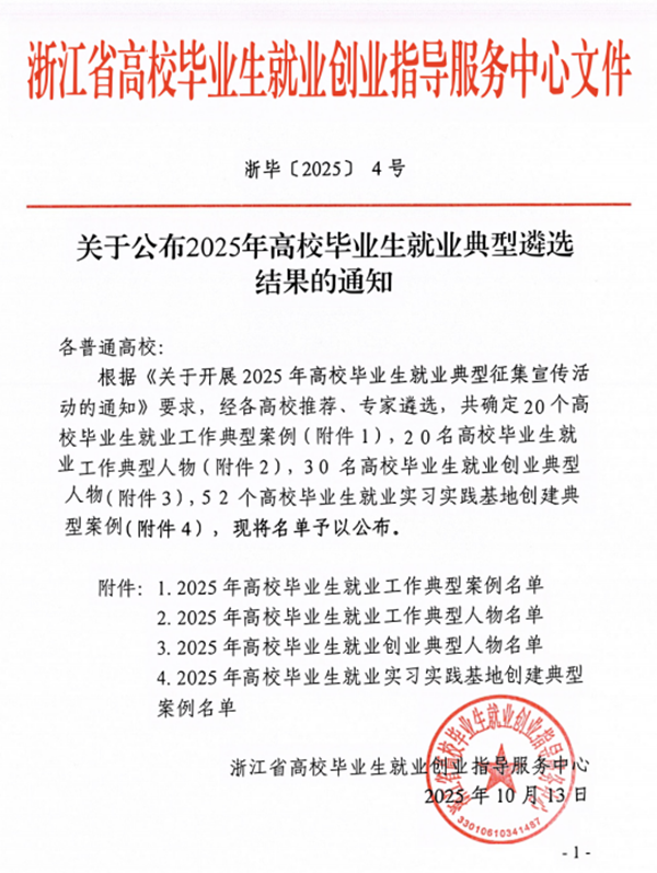近日,浙江省高校毕业生就业创业指导服务中心公布了2025年高校毕业生就业典型遴选结果。我校理学院与长兴县龙山中学合作毕业生就业实习实践基地入选“2025年高校毕业生就业实习实践基地创建典型案例”。
