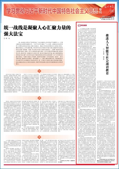 2025年10月30日,《光明日报》06版发表我校马克思主义学院艾志强、祝玲玲老师的理论文章《推进人工智能全社会通识教育》。全文如下: