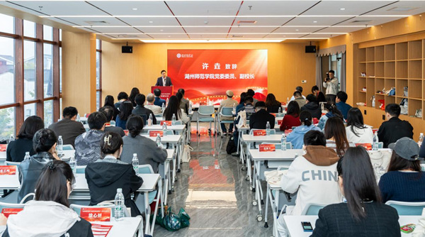 11月8日上午,研讨会举行开幕式。副校长许垚致辞,代表学校向与会嘉宾表示热烈欢迎和诚挚感谢。他表示,湖州师范学院扎根“绿水青山就是金山银山”理念诞生地,始终坚持以文化人、以德树人,重视通过影视艺术讲好中国故事、弘扬时代精神。本次研讨会以中国电影120年为时间坐标、以电影中的抗战精神为核心议题,旨在从光影历史中汲取精神力量,将银幕中的抗战叙事转化为新时代“大思政课”的生动资源。