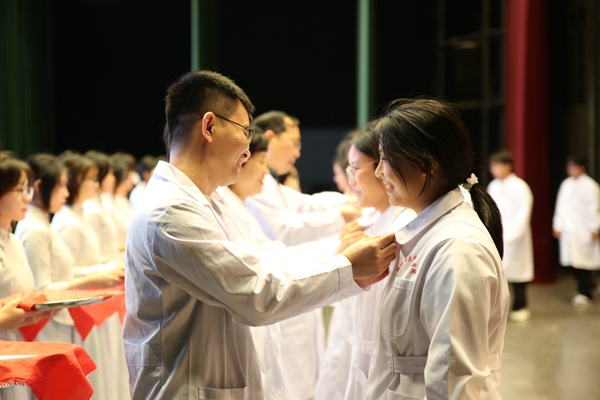 丁敢真代表学校向关心支持医学教育的各界领导、医护同仁及校友致谢,向新生致以问候。他指出,白衣加身意味着身份的转变,前辈为新生扣上“第一粒扣子”,是初心与担当的传承。他希望新生忠于选择,将个人理想融入健康中国建设;追求卓越,锤炼过硬医术;勇于突破,拥抱时代变革,做医学疆域的“拓荒者”。