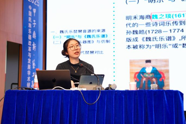 11月7日,由中国民族管弦乐学会(国家一级协会)、上海交通大学党委宣传部(文明办)联合主办的“甲子鼎新·艺工融合——中国民族乐器改革与发展学术研讨会”暨“民乐大师进校园·上海国际艺术节音乐会”在上海交通大学举行。我校音乐学院教师、作曲家林舒瑜受邀作主旨报告《古律新声——明代魏氏乐琵琶的音源制作与当代启示》,系统阐述了魏氏乐琵琶的历史音律、声学特征与数字化复原过程,并展示了其自研音源“Pipa1617”。报告提出以AI与声学建模实现“古乐复原”的新路径,为民族乐器改革与数字音乐创作提供了创新范例。