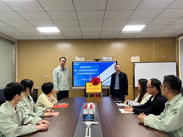 为进一步深化校企合作、推动产学研协同发展,11月13日,工学院院长唐培松、党委副书记陈莹、浙江省首批科技副总、材料工程系教师郭迎春和学院就业辅导员一行四人前往浙江三时纪新材料科技有限公司进行交流。此次交流旨在旨在进一步加强校企沟通交流,探索校企合作新模式,拓宽毕业生就业渠道,实现校企共赢发展。
