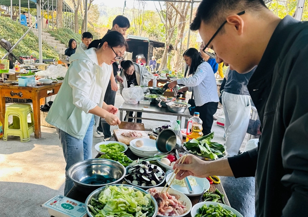 活动中,教师们踊跃参与了骑马、滑草、射箭等多项趣味运动,在驰骋与滑行中释放压力,萌宠乐园的互动更带来阵阵欢笑。中午时分,大家分工协作、自助烧饭,从切配到烹饪默契配合,在亲手制作与共享佳肴中拉近了彼此距离。