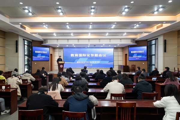 为系统总结“十四五”期间学校教育国际化工作成效与经验,全面谋划“十五五”时期国际化发展新蓝图,11月20日,学校召开教育国际化专项工作培训会。副校长李庆峰出席并讲话,党委宣传部、人事处、学生处、研究生院、教务处、科技处、人文社科处、社会合作与发展联络办公室等部门负责人,二级学院相关负责人、学生工作副书记及外事工作人员参加会议。