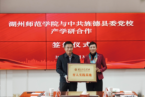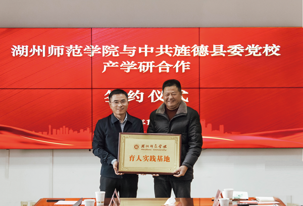 调研期间,丁敢真和旌德县委书记吴忠梅出席了经济管理学院与旌德县委党校的合作签约仪式。丁敢真向旌德县委党校和宣砚文化园授牌“育人实践基地”。旌德县委常委、组织部部长郭磊等参与座谈,双方就未来深化校地产学研合作、人才培养和成果转化等工作进行了交流。