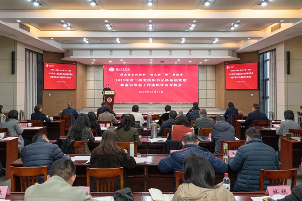 12月17日下午,学校召开2025年度二级党组织书记抓基层党建和意识形态工作述职评议考核会。校党委书记许慧霞主持会议并讲话,党委副书记陈永华、丁敢真出席会议,党务部门负责人,各二级党组织书记,校第四次党代会代表、党支部书记代表、党员代表等参加会议。