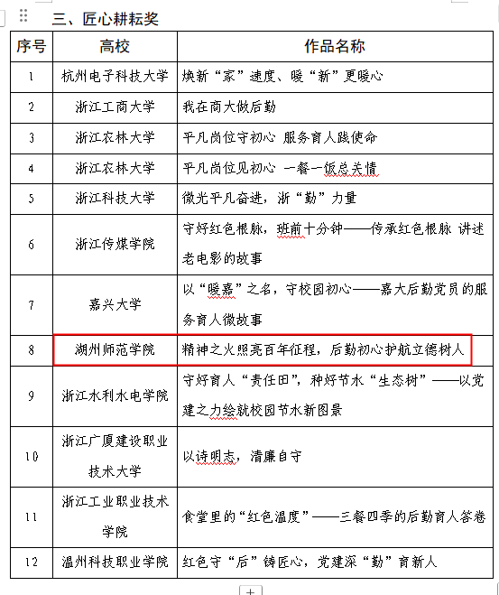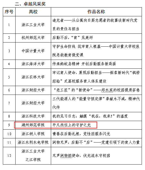 近日,由浙江省教育后勤基建协会主办,思想文化与人力资源管理专业委员会承办的“牢记育人使命,展现后勤担当”为主题的浙江省高校后勤微党课大赛圆满落幕。后勤第一党支部和第三党支部在此次大赛中均表现突出,分别荣获匠心耕耘奖和卓越风采奖。