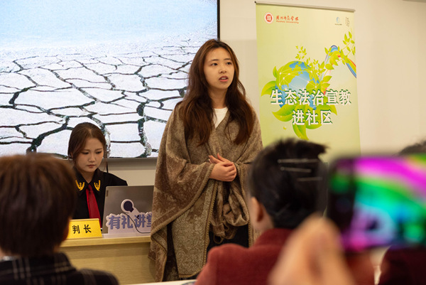活动伊始,团队负责老师在讲话中欢迎社区居民,并指出在“宪法宣传月”开展“生态法治”进社区活动具有重要意义。