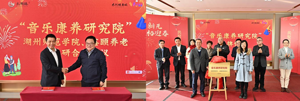 12月28日,南太湖畔暖阳如诗,鑫颐·太湖椿康养社区内琴声悠扬、笑语盈堂。我校音乐学院与湖州鑫颐养老服务有限公司举行产学研合作签约仪式,并共同为“音乐康养研究院”揭牌。这一里程碑式的合作,标志着“音乐+康养”模式在湖州落地生根,校企协同探索银龄事业高质量发展的创新路径正式启航。